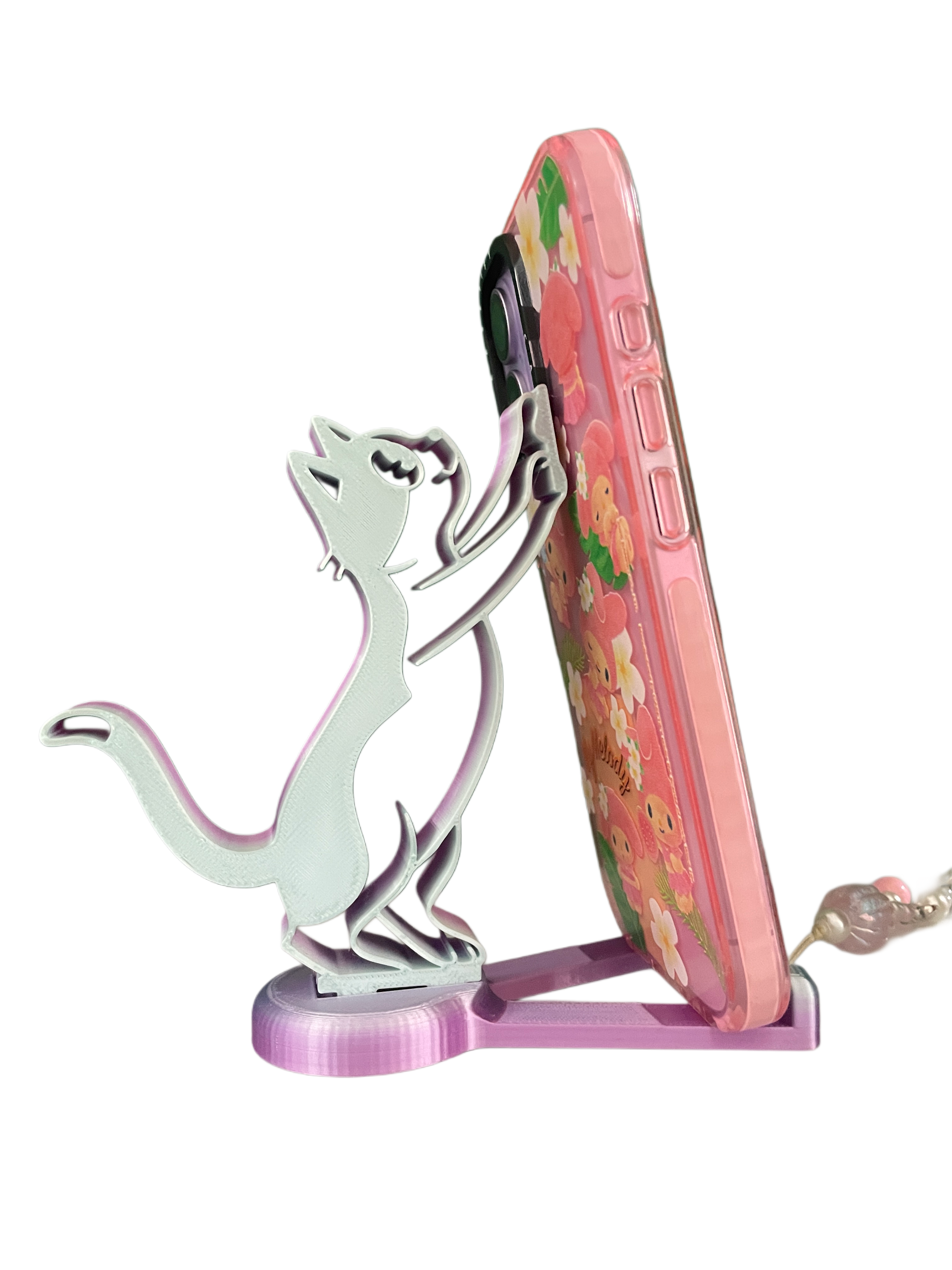 Gradient two-tone PLA cat phone stand. Landscape or portrait. Practical and stylish.