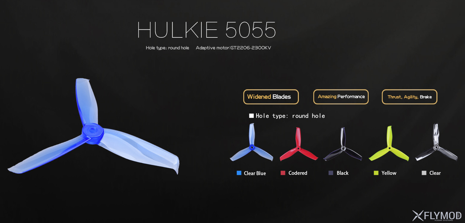 產品:Gemfan HULKIE 5055S 三葉螺旋槳。專為多軸FPV穿越機設計。